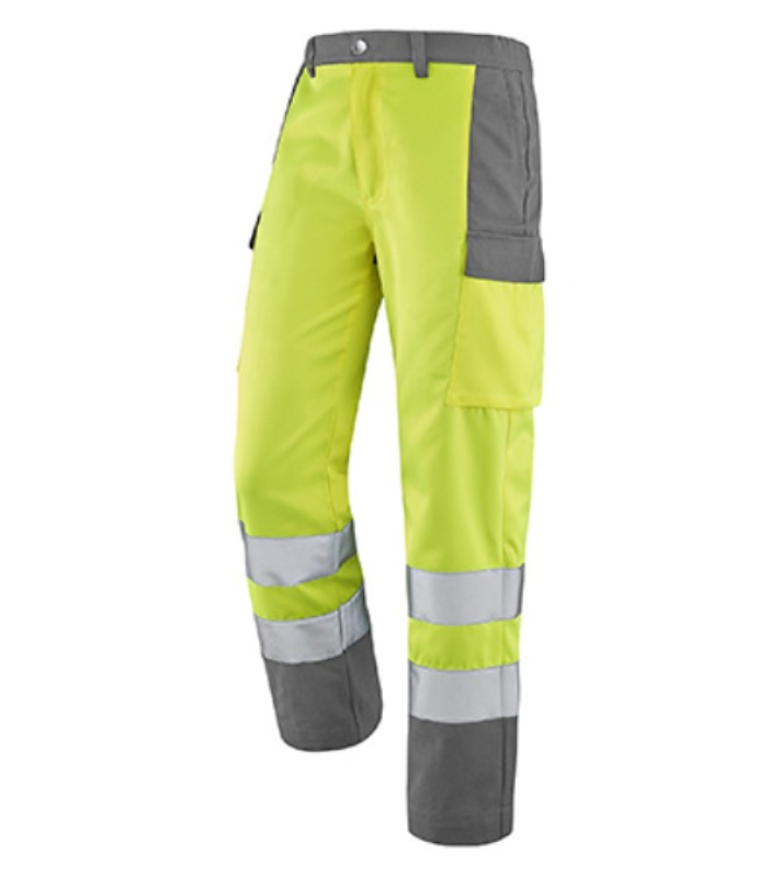 PANTALON DE TRAVAIL HAUTE VISIBILITE M-LINE. POLYESTER / COTON. EN ISO 13688, EN ISO 20471 CL2. T36/38 A 60/62 - JAUNE/GRIS ref.PAN9826JGR