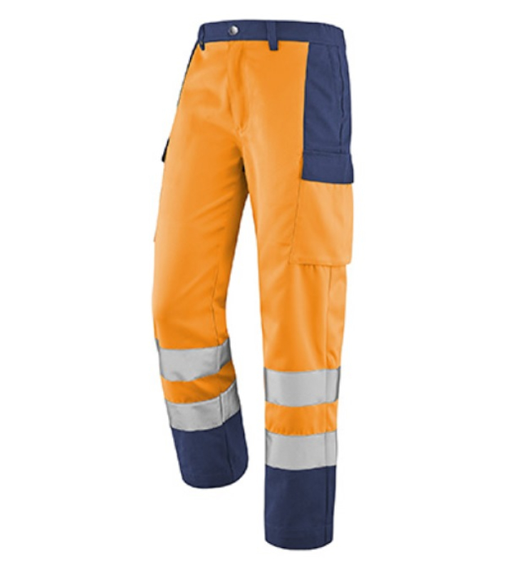 PANTALON DE TRAVAIL HAUTE VISIBILITE M-LINE. POLYESTER / COTON. EN ISO 13688, EN ISO 20471 CL2. T36/38 A 60/62 - ORANGE/MARINE ref.PAN9826OMR