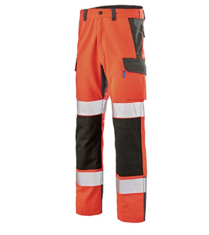 PANTALON DE TRAVAIL HAUTE VISIBILITE POCHE GENOUX BIO ECO RESPONSABLE. POLYESTER RECYCLE / COTON BIO. EN ISO 13688, EN ISO 20471 CL2, EN 14404. T36 À 60 - ROUGE/GRIS ref.PAN9B30RGGR