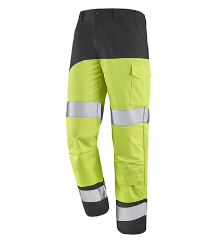 PANTALON DE TRAVAIL HAUTE VISIBILITE POCHE GENOUX V-LINE. COTON / POLYESTER. EN ISO 13688, EN ISO 20471 CL2, EN 14404. T36/38 À 60/62 - JAUNE/GRIS ref.PAN9B85JGR