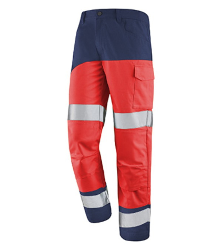 PANTALON DE TRAVAIL HAUTE VISIBILITE POCHE GENOUX V-LINE. COTON / POLYESTER. EN ISO 13688, EN ISO 20471 CL2, EN 14404. T36/38 À 60/62 - ROUGE/MARINE ref.PAN9B85RGMR