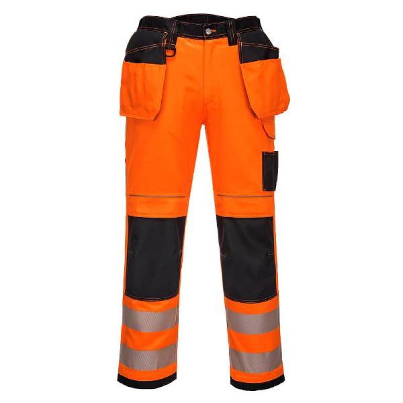 PANTALON DE TRAVAIL ÉTÉ STRETCH HAUTE VISIBILITE FLEXIVISION BICOLORE HOLSTER POCHES GENOUX. POLYESTER / COTON, 245 G/M². EN ISO 20471 CL2. T36 À 60 - ORANGE/NOIR ref.PANT306ONR