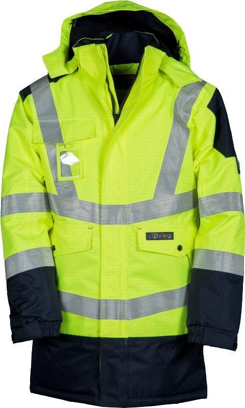PARKA UNISEXE INTEMPERIES FR MULTIRISQUES HAUTE VISIBILITE ATEX IMPER/RESPIRANT. TAILLE XS A 5XL - JAUNE/MARINE ref.PARSHIELDJM