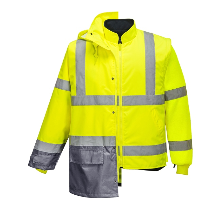 PARKA HAUTE VISIBILITE 5 EN 1 OXFORD IMPER/RESPIRANT FROID NEGATIF. EN ISO 13688, EN 13758-2, EN ISO 20471 CL 3, EN 343 CL 3.1, EN 342. TS À 3XL - JAUNE/GRIS ref.PFLASHJGR