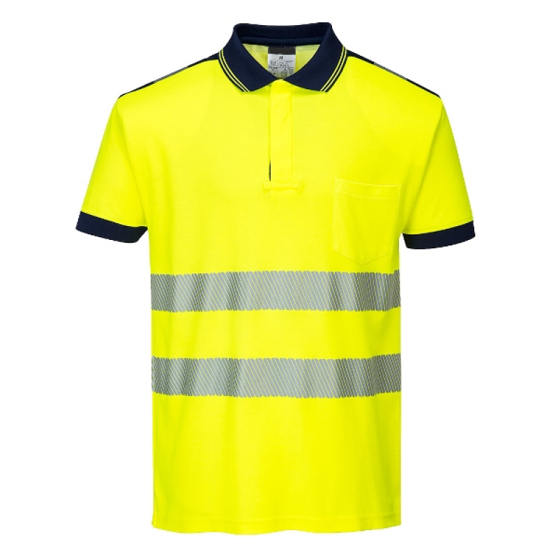 POLO HAUTE VISIBILITE FLEXIVISION COTON CONFORT BICOLORE MANCHES COURTES. COTON / POLYESTER, 175 G/M². EN ISO 20471 CL2. TS À 3XL - JAUNE/MARINE ref.POL180JMR