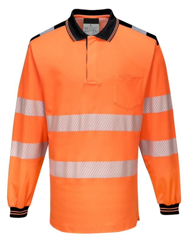 POLO HAUTE VISIBILITE FLEXIVISION COTON CONFORT BICOLORE MANCHES LONGUES. COTON / POLYESTER, 175 G/M². EN ISO 20471 CL3. TS À 5XL - ORANGE/NOIR ref.POL184ONR