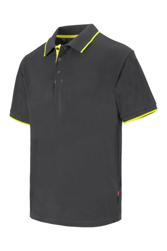 POLO UNISEXE COMBI-FLUO MANCHES COURTES. 40% POLYESTER / 60% COTON, 180 G/M². TXS A 3XL - GRIS/JAUNE FLUO ref.POL5505GRJF
