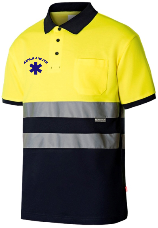 POLO UNISEXE HAUTE VISIBILITE BICOLORE MANCHES COURTES AMBULANCIER. 55% COTON / 45% POLYESTER, 150 G/M². EN ISO 471 CL1. TS À 3XL - JAUNE FLUO/MARINE ref.POLA5513JM