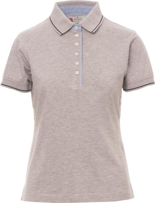 POLO FEMME 175 CHIC MANCHES COURTES. 100% COTON, 175 G/M². TS À XL - HEATHER GREY/MARINE ref.POLFCHHGMR