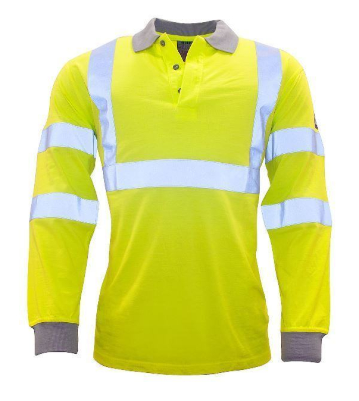 POLO MANCHES LONGUES HAUTE VISIBILITE FR IGNIFUGE ANTI-FLAMME ATEX ARC ELECTRIQUE. TAILLE S A 4XL - JAUNE/GRIS ref.POLFR77JGR