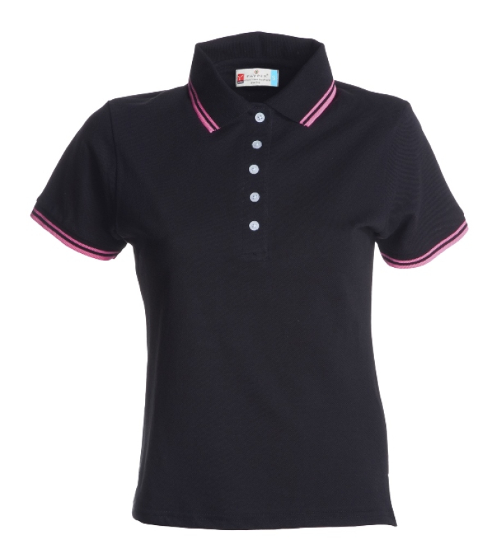 POLO FEMME 210 CONTRASTE MANCHES COURTES. 100% COTON, 210 G/M². TXS À XL - NOIR/FUSHIA FLUO ref.POLFSKNRFUSF