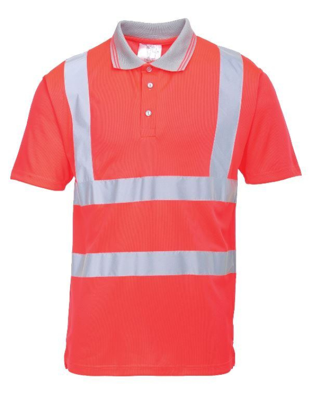 POLO HAUTE VISIBILITE MANCHES COURTES. 100% POLYESTER, 175 G/M². EN 13758-2, EN ISO 13688, EN ISO 471 CL2. TS À 3XL - ROUGE FLUO ref.POLS477RG
