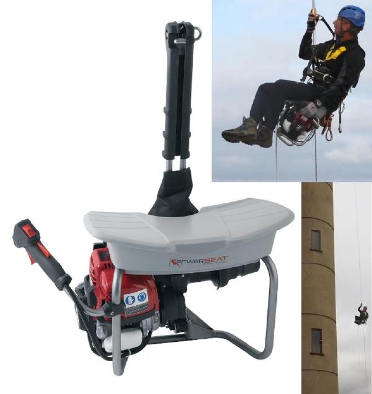 HARKEN INDUSTRIAL POWERSEAT® THERMIQUE. La version thermique du Harken Industrial PowerSeat® a révolutionné le travail en hauteur en permettant à l’utilisateur d’accéder rapidement au site souhaité et de demeurer en place le temps nécessaire, dans une posture confortable. Le PowerSeat constitue une solution efficace, pratique et sûre, idéale pour réaliser les interventions dans les délais impartis. La consommation de carburant varie en fonction de la charge et de l’utilisation, mais le moteur reste néanmoins extrêmement sobre : quelques litres d’essence sans plomb additionnée de mélange pour 4 temps suffisent à une journée complète de travail en hauteur. Simple à utiliser, le PowerSeat est adapté à une grande variété d’applications, des travaux sur les éoliennes ou l’extérieur des bâtiments aux opérations de sauvetage et recherche, et peut également faire office de treuil portatif. Robuste et résistant à la corrosion, il n’en demeure pas moins facilement transportable grâce à son poids de seulement 14 kg. Charge de travail maximum de 2,7 kN. Il fonctionne avec des cordes statiques EN1891 classe A de 10 à 12,7 mm de diamètre. Vitesse de montée avec charge de 120 kg (m/min) 15 m/min. Vitesse de montée avec charge de 273 kg (m/min) 11 m/min.