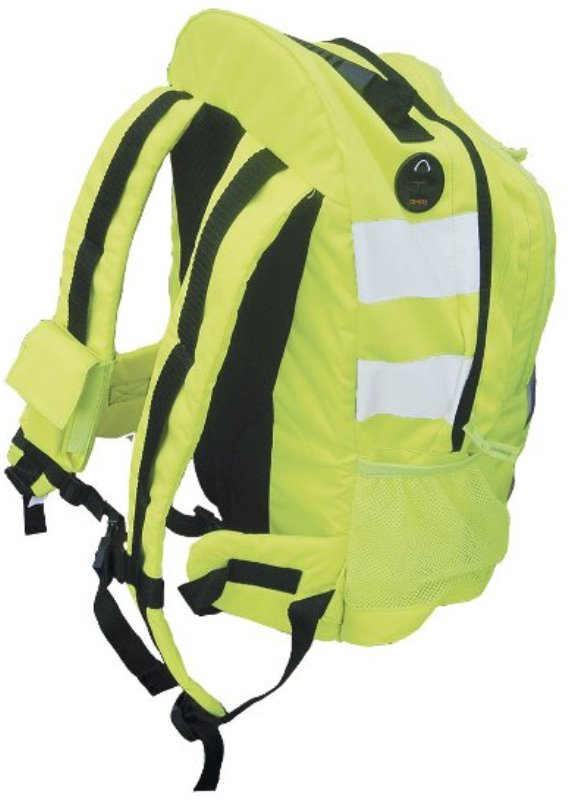 SAC A DOS HAUTE VISIBILITE MULTI-USAGES AMBULANCIER. Polyester renforcé 600D, enduit 210T PA. Dimensions : 43 x 28 x 21 cm. Capacité : 25 litres. Bandes réfléchissantes frontales et latérales. Sangles de portage réglables et matelassées. Dos matelassé. Anse de portage. Multipoches, poche téléhone, sortie casque MP3, fond renforcé.