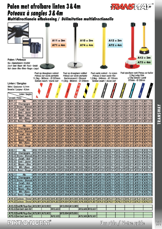 PIKT-O-NORM POTEAUX À SANGLES, DE GUIDAGE, PVC, MÉTALLIQUES,… ref.SIGNALS639