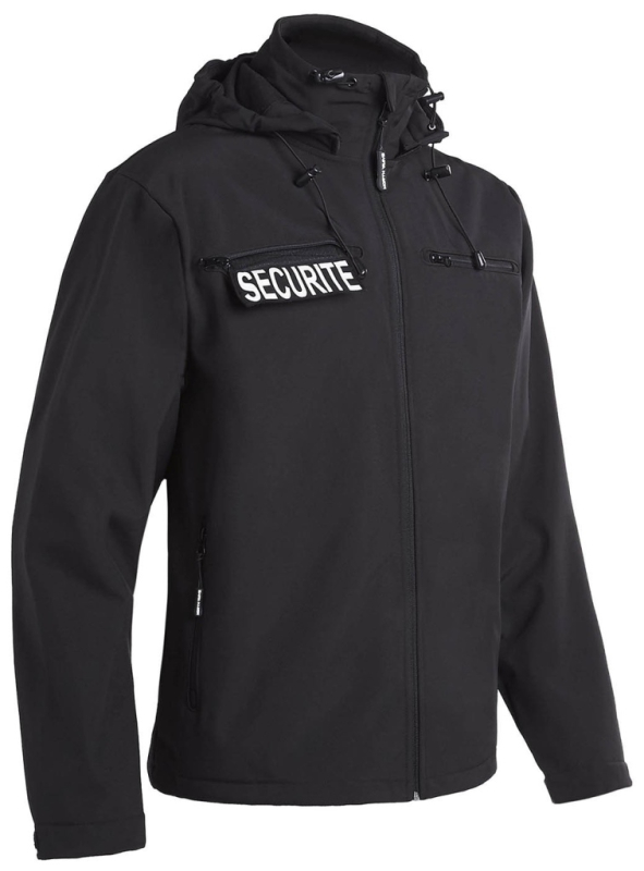 BLOUSON VIGILE UNISEXE INTEMPERIES SOFTSHELL SECURITE. POLYESTER / SPANDEX, 300 G/M² - TS A 4XL - NOIR ref.SOFT8610NR