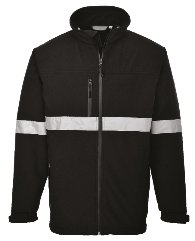 BLOUSON VIGILE UNISEXE INTEMPERIES SOFTSHELL SECURITE REFLECT. POLYESTER / ELASTHANE / POLAIRE, 310 G/M² - TS A 3XL - NOIR ref.SOFTTK54NR