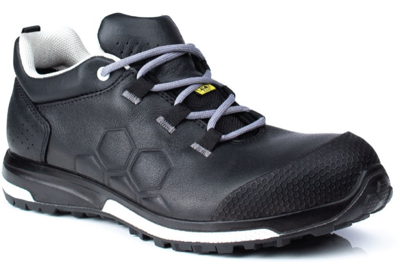 CHAUSSURE DE SECURITE POUR HOMME COMME POUR FEMME, TREKKING BAS BOUT RECOUVERT TPU, METAL FREE, ESD, HRO.TIGE: cuir pleine fleur lisse noir, hydrofuge.