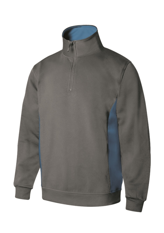 SWEAT UNISEXE COMBI-DUO COL ZIP. 65% POLYESTER / 35% COTON, 260 G/M². TXS A 3XL - GRIS/BLEU CIEL ref.SW5704GRBC
