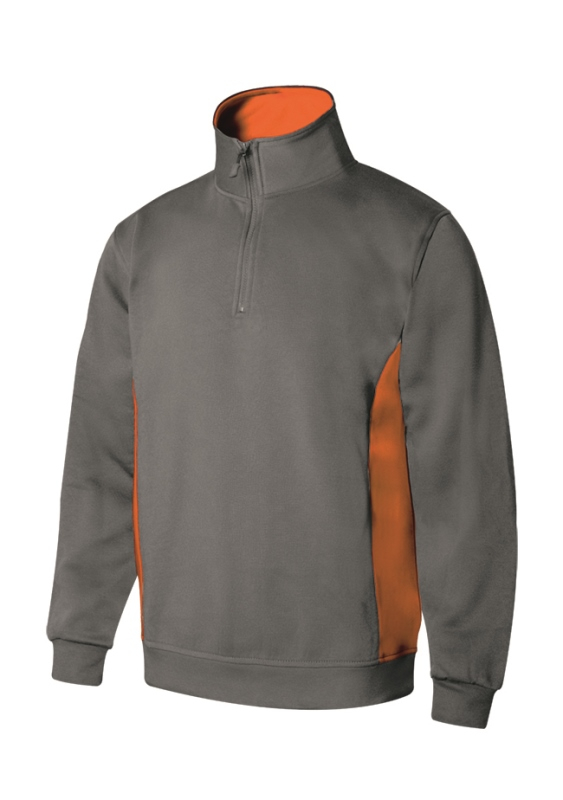 SWEAT UNISEXE COMBI-DUO COL ZIP. 65% POLYESTER / 35% COTON, 260 G/M². TXS A 3XL - GRIS/ORANGE ref.SW5704GROR