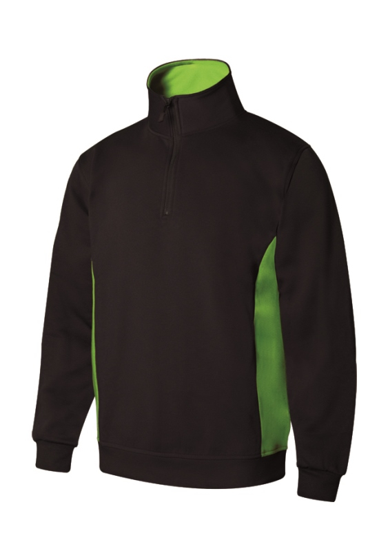 SWEAT UNISEXE COMBI-DUO COL ZIP. 65% POLYESTER / 35% COTON, 260 G/M². TXS A 3XL - NOIR/VERT ref.SW5704NRVT