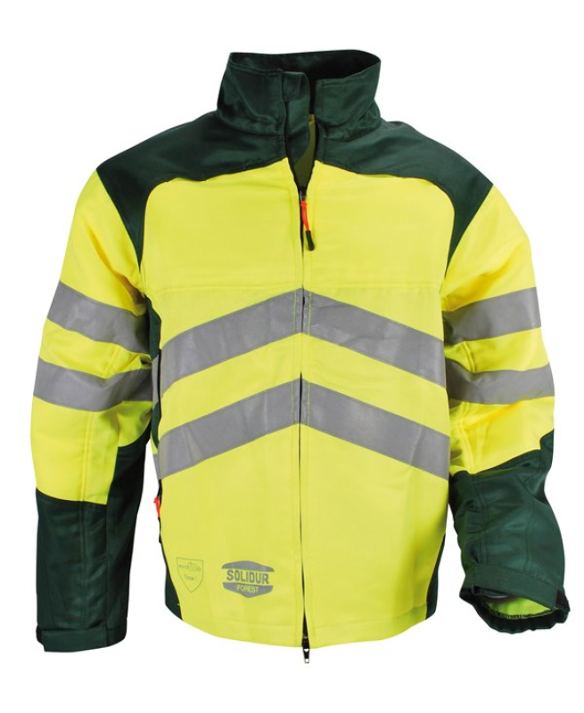 VESTE BUCHERON ELAGUEUR GLOW HAUTE VISIBILITE DE PROTECTION DE SCIE A CHAINE EN 381-11 CLASSE 1 + EN ISO 20471 CLASSE 2. TS A 3XL - VERT/JAUNE FLUO ref.VESTG1HVJ