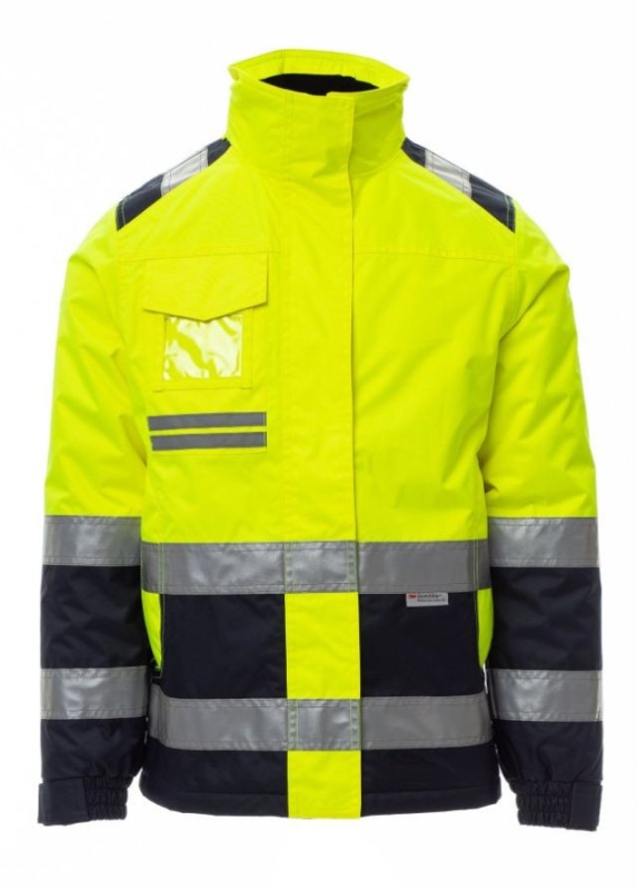 VESTE FEMME MATELASSEE HAUTE VISIBILITE IMPER/RESPIRANT FROID NEGATIF FLASHVISION. 100% POLYESTER, 190 G/M². EN ISO 13688, EN ISO 471 CL. TXS À XL - JAUNE/MARINE ref.VOXFFLASHJM