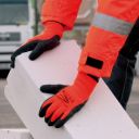 gant multirisques, froid -30°c, tricote une piece fluo orange, enduction paume latex granite noire, poignet elastique, t8 a 11