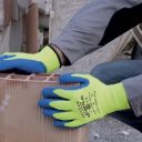 gant multirisques, froid -20°c, tricote une piece fluo jaune, enduction paume latex granite bleu, poignet elastique, t8 a 11