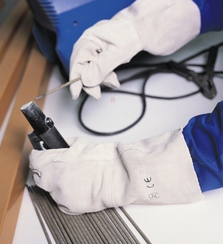 GANT ANTI-CHALEUR 100°C. Gant tout croûte de bovin naturelle. Manchette croûte de 15 cm. Taille unique (10). Activités : Métallurgie - Galvanisation - Fonderies - Décapage - Acieries - Sidérurgie - Soudage. Avantages : Gant très résistant à l’abrasion, à la piqûre, au feu, aux petites projections de métaux fondus. Bonne protection à la chaleur de contact.