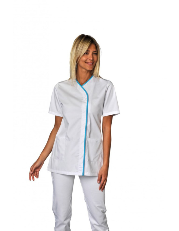 TUNIQUE ALYA. PRESSIONS MANCHES COURTES ECO RESPONSABLE. UNI POLYESTER / LYOCELL. T0 (36/38) à 6 (60/62) - BLANC/ATOLL ref.ALYAMCAT