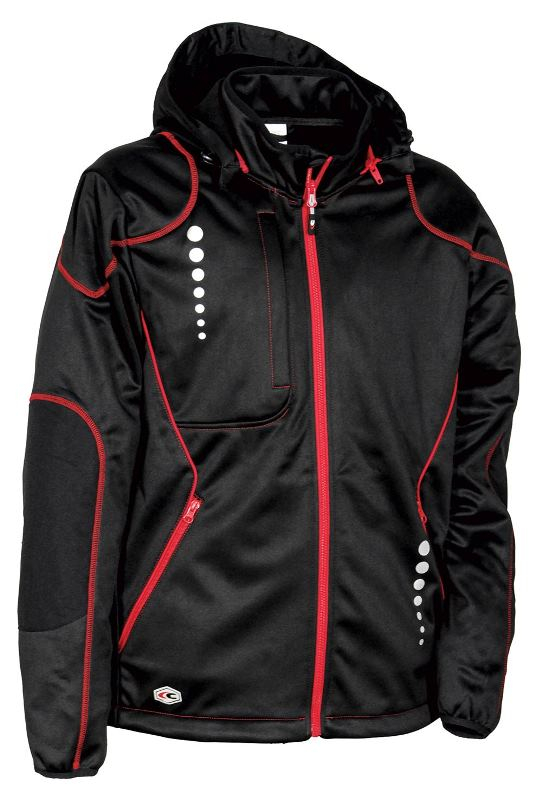 VESTE SOFTSHELL HYDROFUGE ET RESPIRANT ERGOWEAR. SOFTSHELL 100% POLYESTER / MEMBRANE COFRATEX, 380 G/M². EN ISO 13688, EN 343. TS À 4XL - NOIR/ROUGE ref.BL387NR