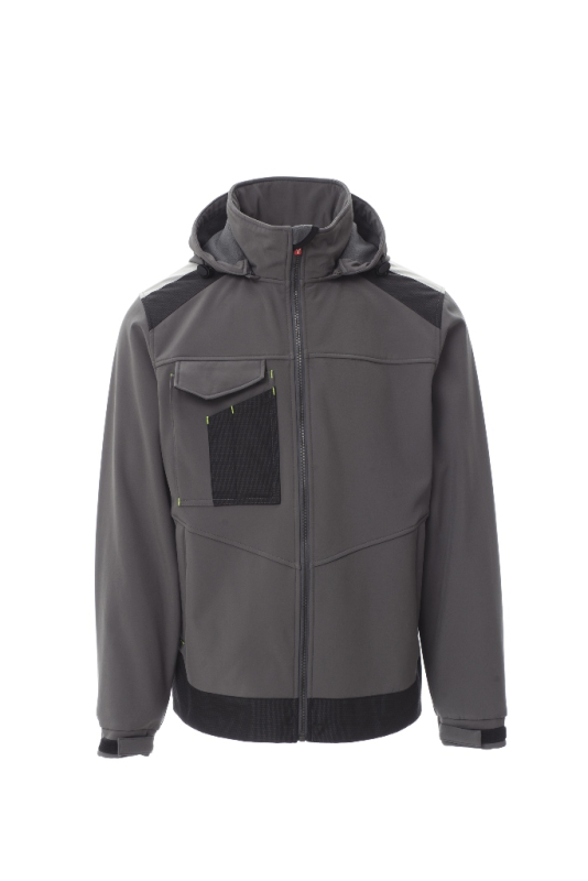 BLOUSON TECH-LINE UNISEXE SOFTSHELL A CAPUCHE 330. NYLON / ELASTHANNE / POLAIRE / MEMBRANE TPU, 330 G/M² - TXS A 5XL - GRIS FONCE ref.BLPERFGRF