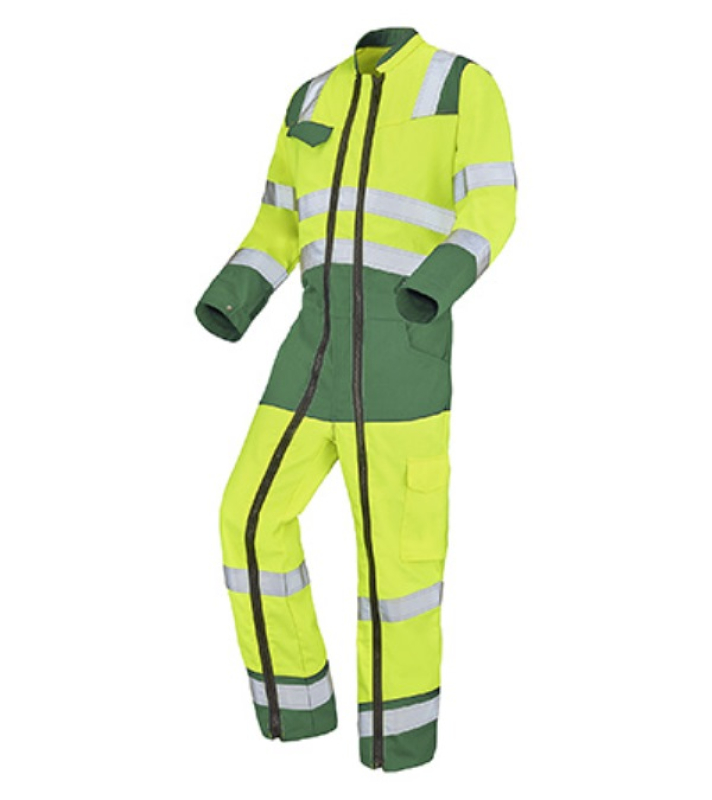 COMBINAISON DE TRAVAIL 2 ZIP HAUTE VISIBILITE V-LINE. COTON / POLYESTER. EN ISO 13688, EN ISO 20471 CL3. T36/38 À 60/62 - JAUNE/AMAZONIE ref.CEP9482JAM