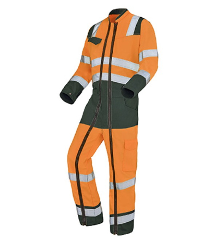 COMBINAISON DE TRAVAIL 2 ZIP HAUTE VISIBILITE V-LINE. COTON / POLYESTER. EN ISO 13688, EN ISO 20471 CL3. T36/38 À 60/62 - ORANGE/VERT US ref.CEP9482OV