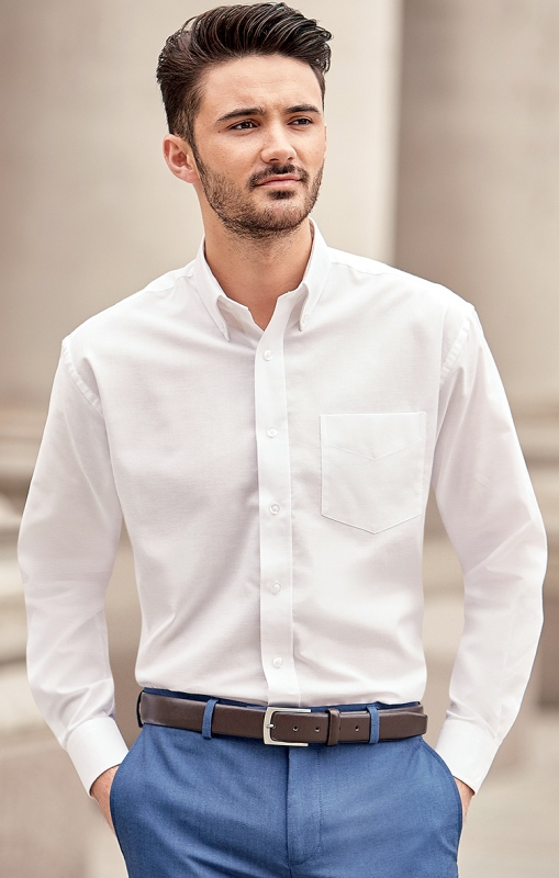 CHEMISE HOMME MANCHES LONGUES. COTON OXFORD / POLYESTER. TS A 6XL - BLANC ref.CHEM932BLC