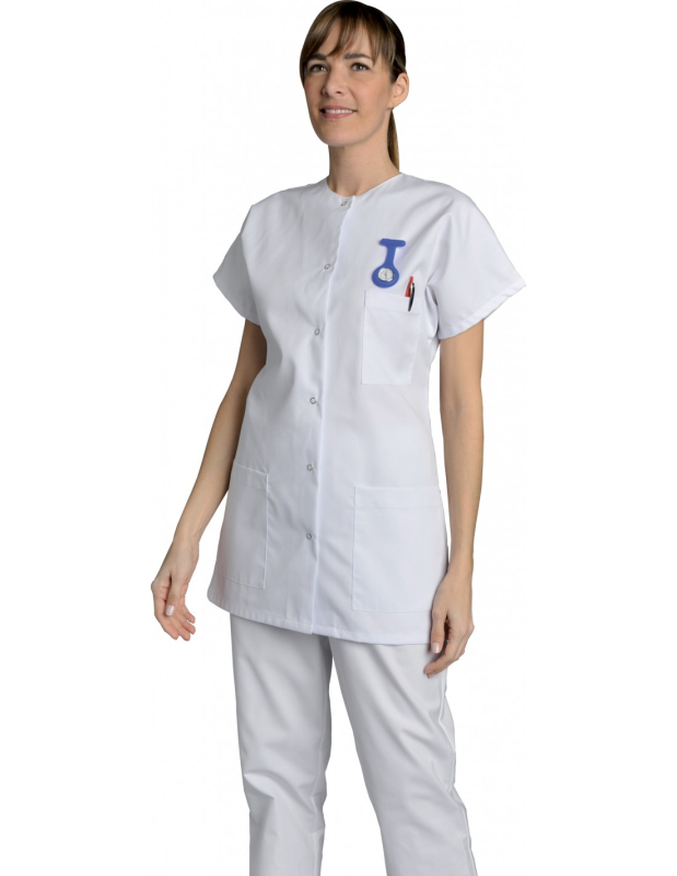 TUNIQUE COLETTE. PRESSIONS MANCHES COURTES. UNI POLYESTER / COTON. T0 (36/38) à 6 (60/62) - BLANC ref.COLETTEBLC
