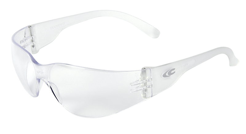 LUNETTES EFFILEES LEGERES. Elégantes lunettes de protection en polycarbonate avec coques latérales incorporées dans les branches. Oculaire polycarbonate incolore (épaisseur 2,45 mm). CE EN166 et EN170 (2-1.2 1FT). Poids 24 g.