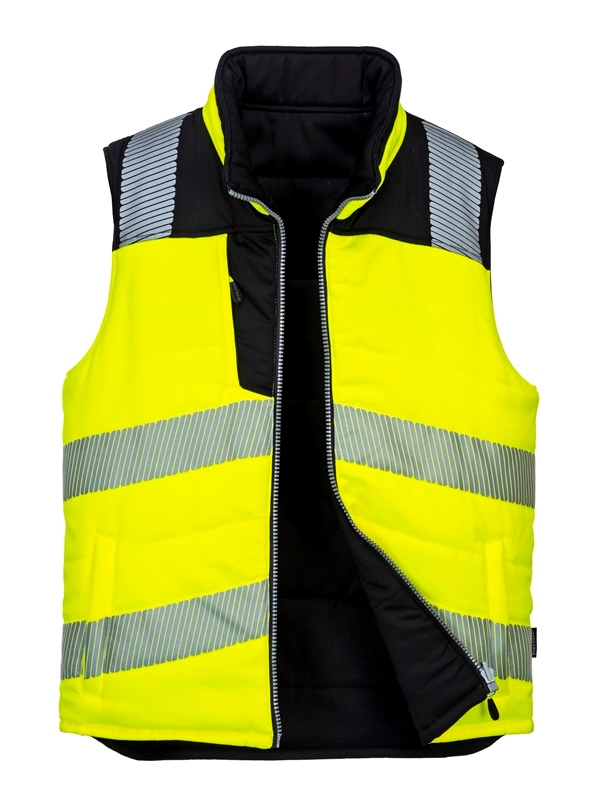GILET DOUDOUNE REVERSIBLE 2 EN 1 HAUTE VISIBILITE FLEXIVISION BICOLORE. POLYESTER / COTON / INSULATEX 545 G/M². EN ISO 20471 CL2. TS À 3XL - JAUNE/NOIR ref.GIL374JNR
