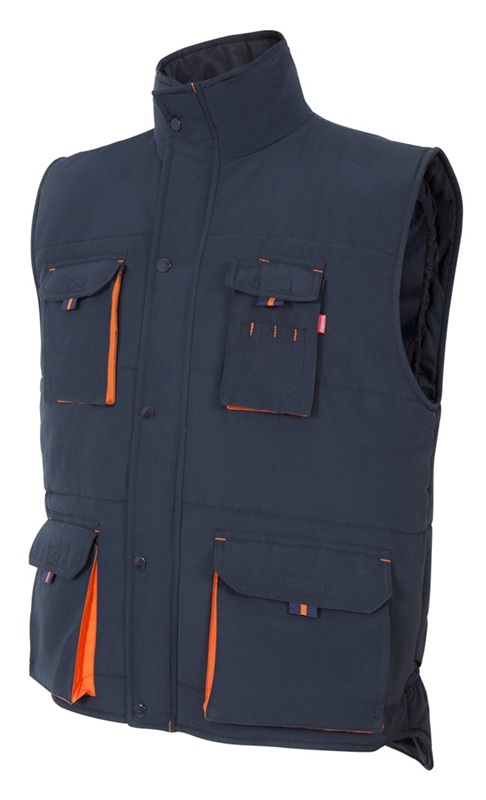 GILET UNISEXE COMBI-DUO MATELASSE MULTIPOCHES. 100% POLYESTER, 400 G/M². TS A 3XL - MARINE/ORANGE ref.GIL5902MROR