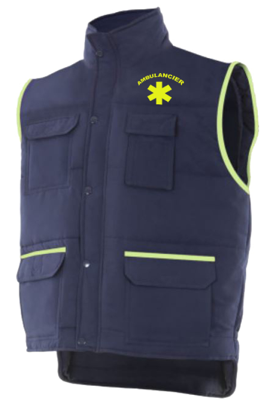GILET UNISEXE COMBI-FLUO MATELASSE MULTIPOCHES AMBULANCIER. 100% POLYESTER, 400 G/M². TS A 3XL - MARINE/JAUNE FLUO ref.GILAP108MRJ