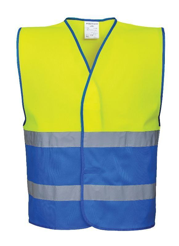 GILET HAUTE VISIBILITE BICOLORE. 100% POLYESTER, 125 G/M². EN 13688, EN ISO 20471 CL1. TS/M À XXL/3XL - JAUNE/BLEU ROYAL ref.GILC484JBR
