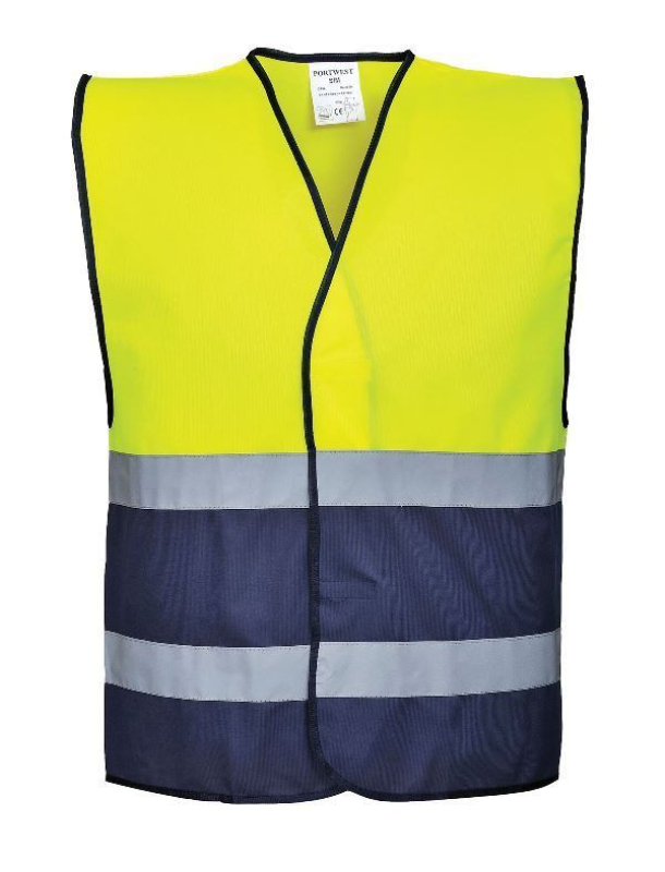 GILET HAUTE VISIBILITE BICOLORE. 100% POLYESTER, 125 G/M². EN 13688, EN ISO 20471 CL1. TS/M À XXL/3XL - JAUNE/MARINE ref.GILC484JM