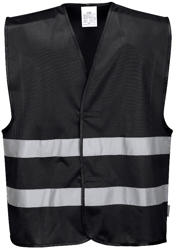 GILET VIGILE UNISEXE SECURITE REFLECT. 100% POLYESTER, 125 G/M² - TS/M A XXL/3XL - NOIR ref.GILF474NR