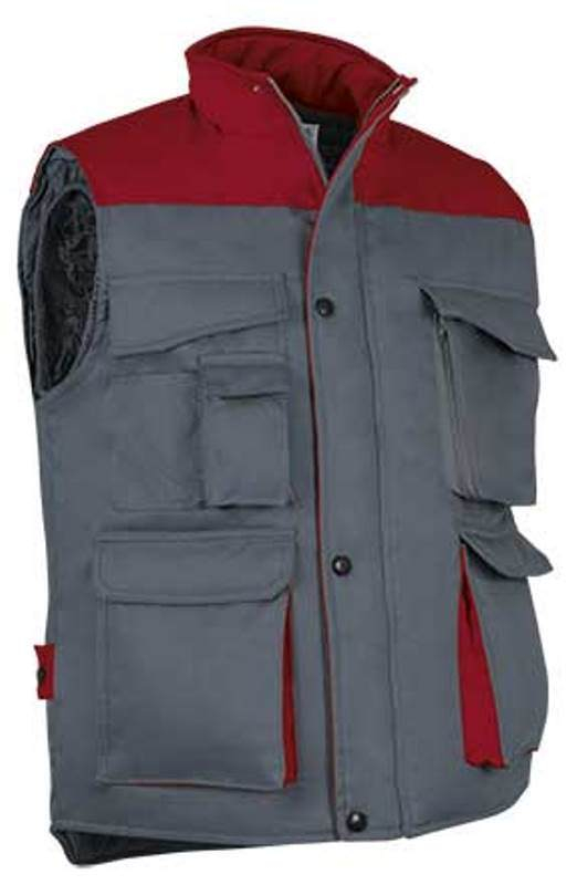 GILET UNISEXE MATELASSE MULTIPOCHES IMAGE. POLYESTER/COTON, 420 G/M². TS A 3XL - GRIS/ROUGE ref.GILTHGRRG