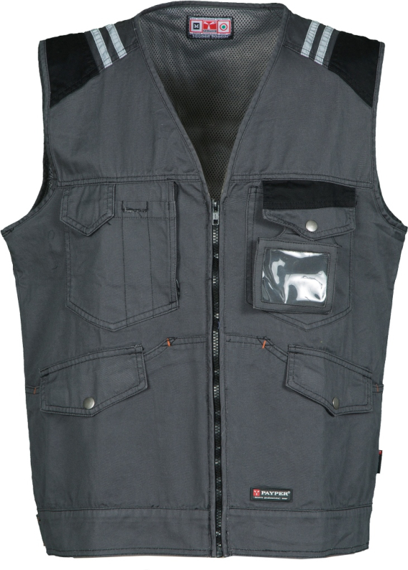 GILET UNISEXE BADGE SYSTEM BICOLORE. 100% COTON TWILL 250 G/M². EN ISO 13688. TXS à 3XL - GRIS FONCE/NOIR ref.GILTUCSGRF