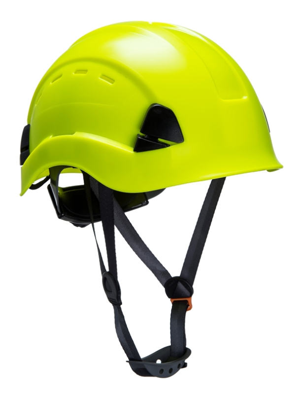 CASQUE VENTILE JAUNE FLUO TRAVAUX EN HAUTEUR, MONTEUR / ECHAFAUDEUR / COUVREUR / MECANIEN, TRES CONFORTABLE ET RESISTANT. Casque sans visière pour une bonne vision vers le haut. Coque ABS haute résistance. Jugulaire 4 points avec boucle d’attache rapide et protège menton. Coiffe intérieure ergonomique avec harnais textile confort 6 points. Réglage rapide par crémaillère de 52 à 63 cm (réglage de profondeur de casque possible également sur deux niveaux). Garniture frontale anti-transpiration. Ventilations latérales permettant un flux d'air rafraîchissant autour de la tête. 4 crochets périphériques incorporés pour lampes frontales. Fentes latérales pour l’intégration d’un grand nombre d’accessoires (coquilles anti-bruit,…). Poids : 450 g. EN 397 (-30°C/+50°C).