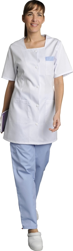 TUNIQUE MARINA. PRESSIONS MANCHES COURTES. UNI POLYESTER / COTON. T0 (36/38) à 6 (60/62) - BLANC ref.MARINABLC