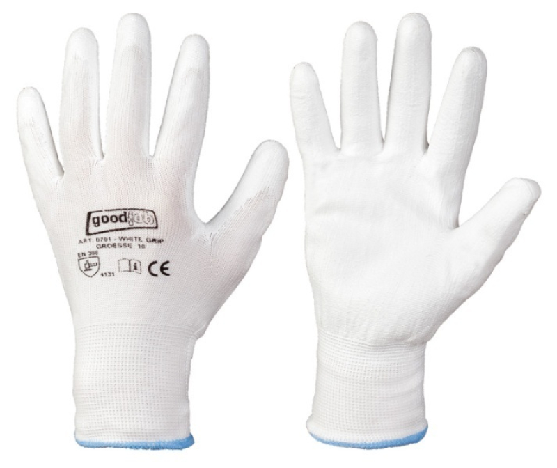 GANT PRECISION, MANUTENTION FINE, POLYAMIDE TRICOTE 1 PIECE JAUGE 15 ENDUCTION PU BLANC, T6 A 11 ref.NYM15PUS