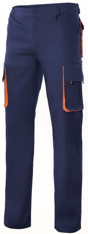 PANTALON UNISEXE COMBI-DUO. 65% POLYESTER / 35% COTON, 190 G/M². T34 A 60 - MARINE/ORANGE ref.P3004MROR